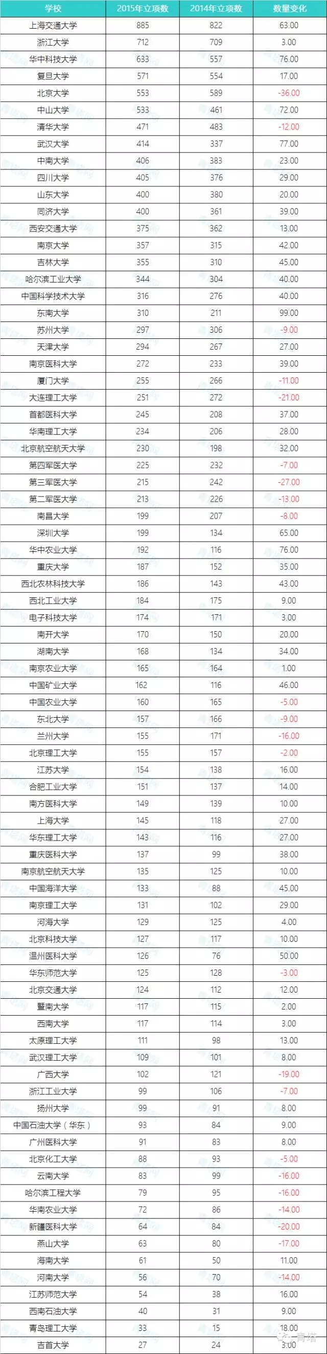 今天下午,2015年的国家自然科学基金终于在千呼万唤中出炉了,青塔在第一时间对各大高校今年获得的国家自然科学基金情况进行了统计,由于今天国家自然科学基金委的网站几乎被查询的人挤瘫,统计工作遇到极大困难,我们目前只能先查询各大高校的总体数量情况,并且按照2014年的排名从上往下查询,今天我们会连夜统计各大高校的立项总金额、优青、重点项目、重大仪器和创新群体等的立项结果,综合的情况请大家关注青塔微信公众号明天更详细的统计结果发布。